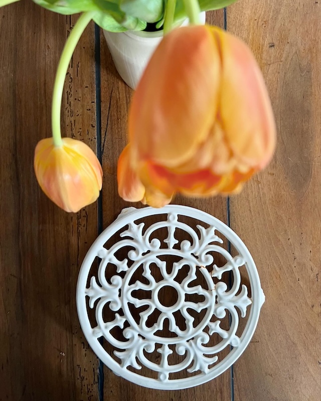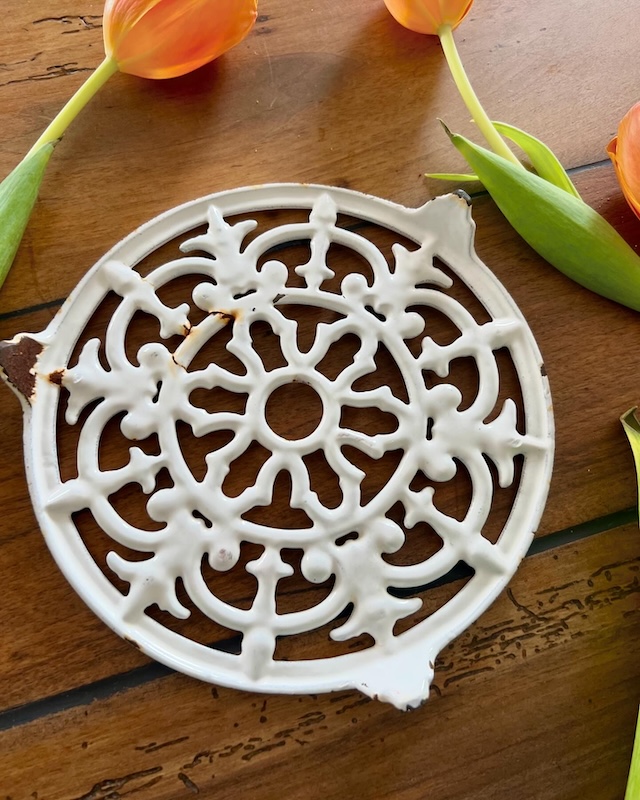 On en a tous besoin à la maison et tant qu’à faire autant adopter une pièce qui a une histoire à nous raconter. Cet adorable dessous de plat blanc en fonte offre de jolies volutes pour une touche d’élégance là où on s’y attend le moins. Cet indispensable pourra trôner sur la table en déco ou la préserver d’un plat bien trop chaud.
